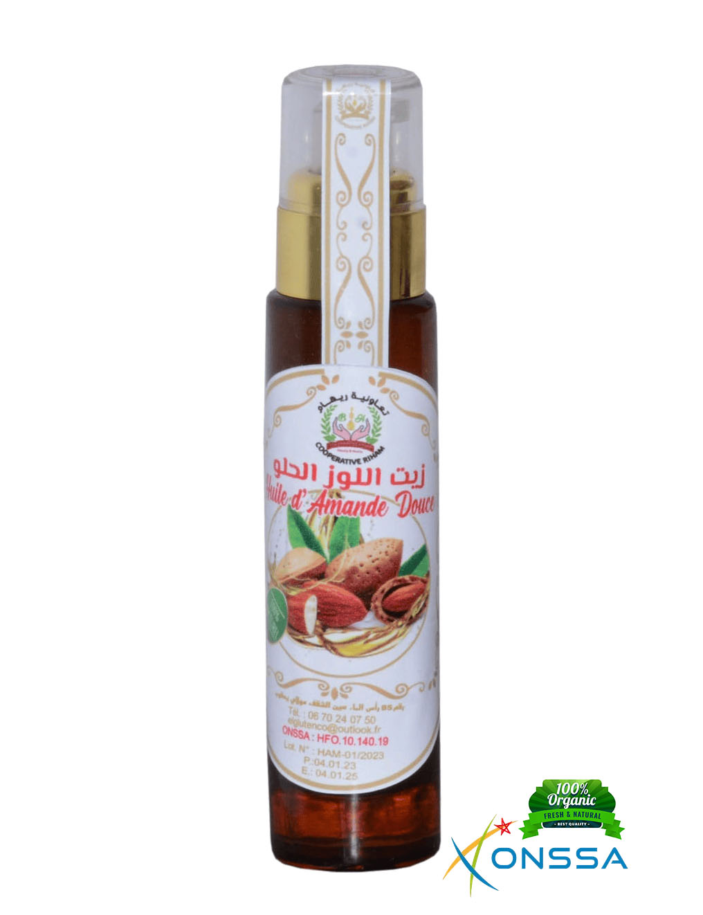 🌰 Huile d’amande douce : Naturelle, hydratante et nourrissante, parfaite pour la peau et les cheveux.