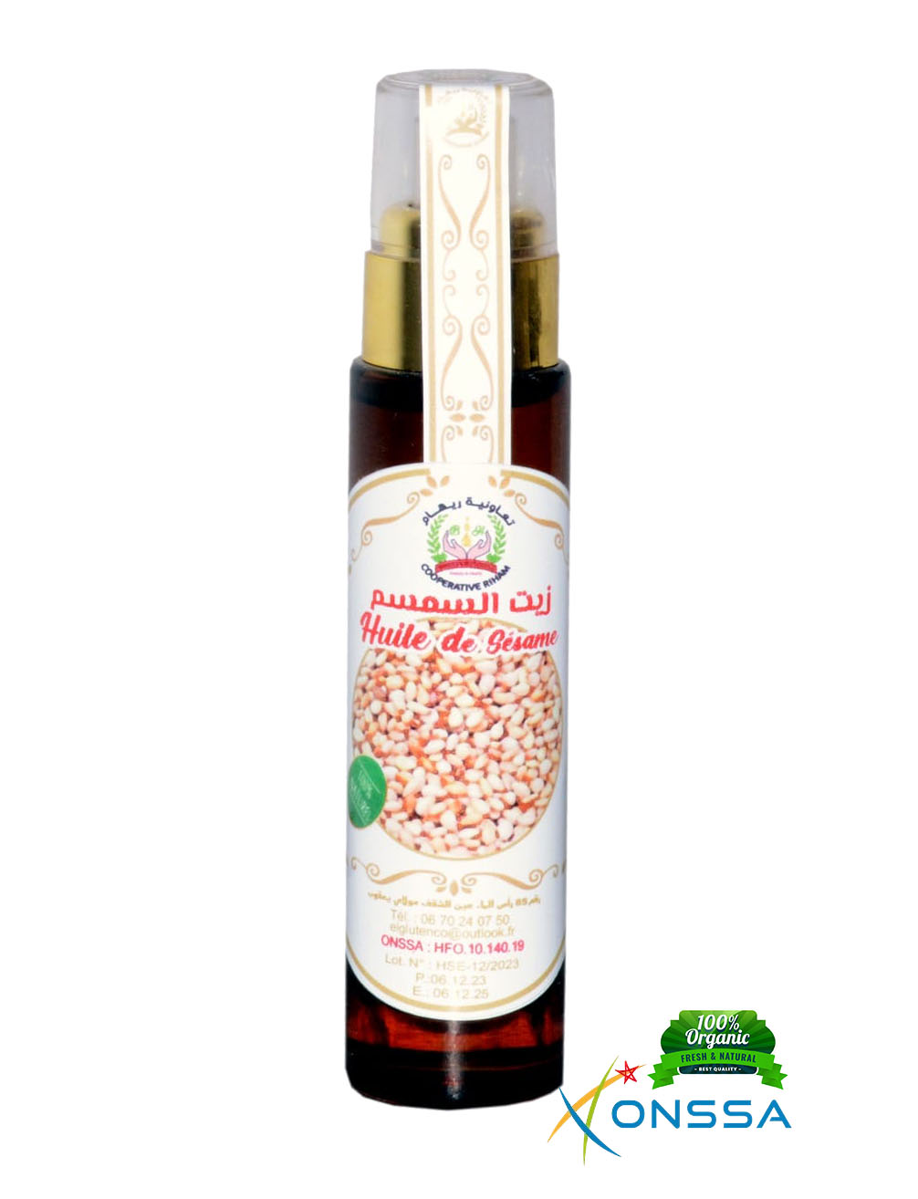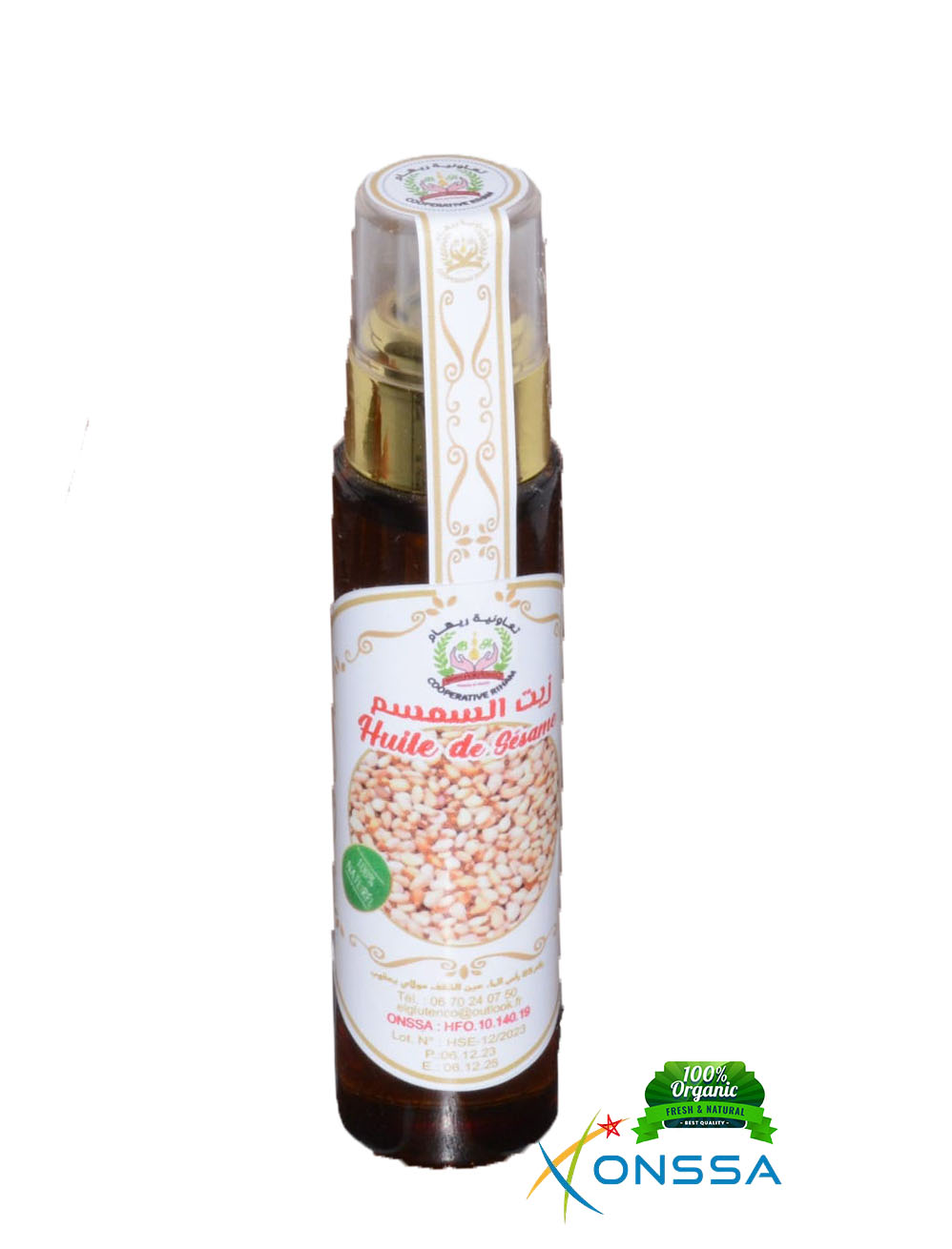🌿 Huile de sésame : Une huile végétale naturelle extraite des graines de sésame, riche en nutriments essentiels et en antioxydants.