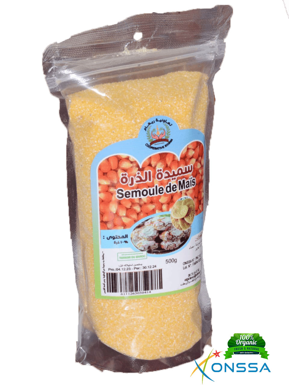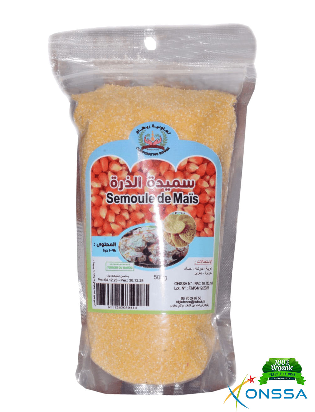 🌽 Semoule de maïs : Un ingrédient naturel et nutritif, riche en glucides et en fibres.